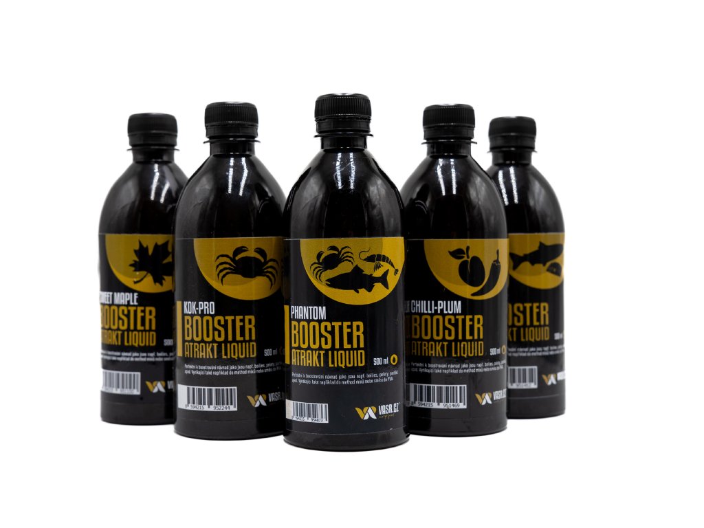 Booster atrakt liquidy jsou sestavené s největší pečlivostí z kvalitních tekutých potrav, olejů, esencí a dalších pro ryby lákavých složek. Perfektní k boostrování návnad jako jsou např. boilies, pelety, partikl apod. Vynikající také například do method mixů nebo směsí do PVA.